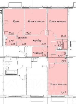 Совершенно новая квартира площадью 78,56 кв.м, с идеальной планировкой: три жилые изолированные комнаты (13,48-14,48-13,42), просторная кухня 12,47 кв.м и целых три санузла.