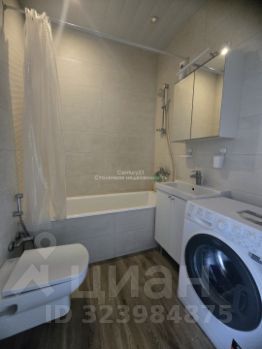 В ванной комнате теплый пол, полностью оборудована необходимой мебелью и сантехникой, есть стиральная машина.