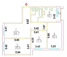 + Просторная 4-комнатная квартира с общей площадью 100 м²