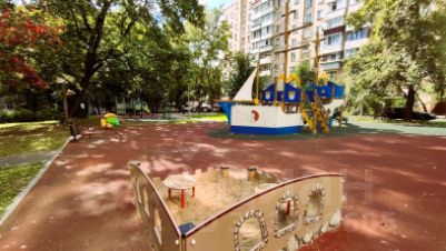 Во дворе расположены детская площадка и зоны отдыха, окружённые зеленью, что идеально для семей с детьми или любителей прогулок.