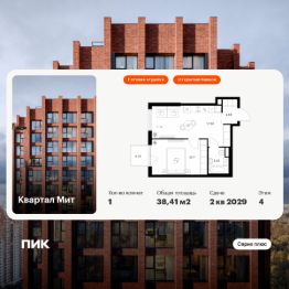 Новостройка! Продается 1-комн. кв-ра площадью 38,41 кв.м, (Корпус 3.4, Секция 4) 4 этаж 32-этажного дома в Квартал Мит от ПИК. "Квартал Мит" строится в экологически чистом районе Митино, где по соседству расположен большой лесопарк, а с двух сторон протекают реки Сходня и Журавка. Для семей с детьми здесь появится школа и два детских сада.
