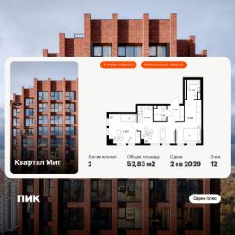 Новостройка! Продается 2-комн. кв-ра площадью 52,83 кв.м, (Корпус 3.4, Секция 4) 12 этаж 32-этажного дома в Квартал Мит от ПИК. "Квартал Мит" строится в экологически чистом районе Митино, где по соседству расположен большой лесопарк, а с двух сторон протекают реки Сходня и Журавка. Для семей с детьми здесь появится школа и два детских сада.