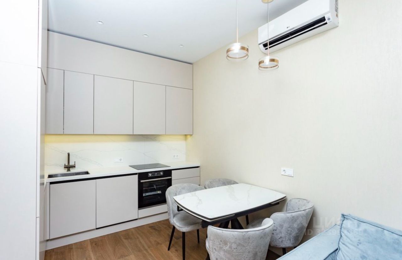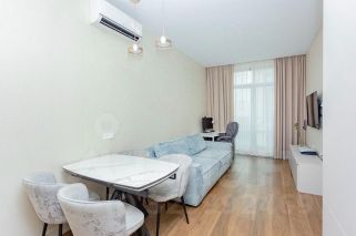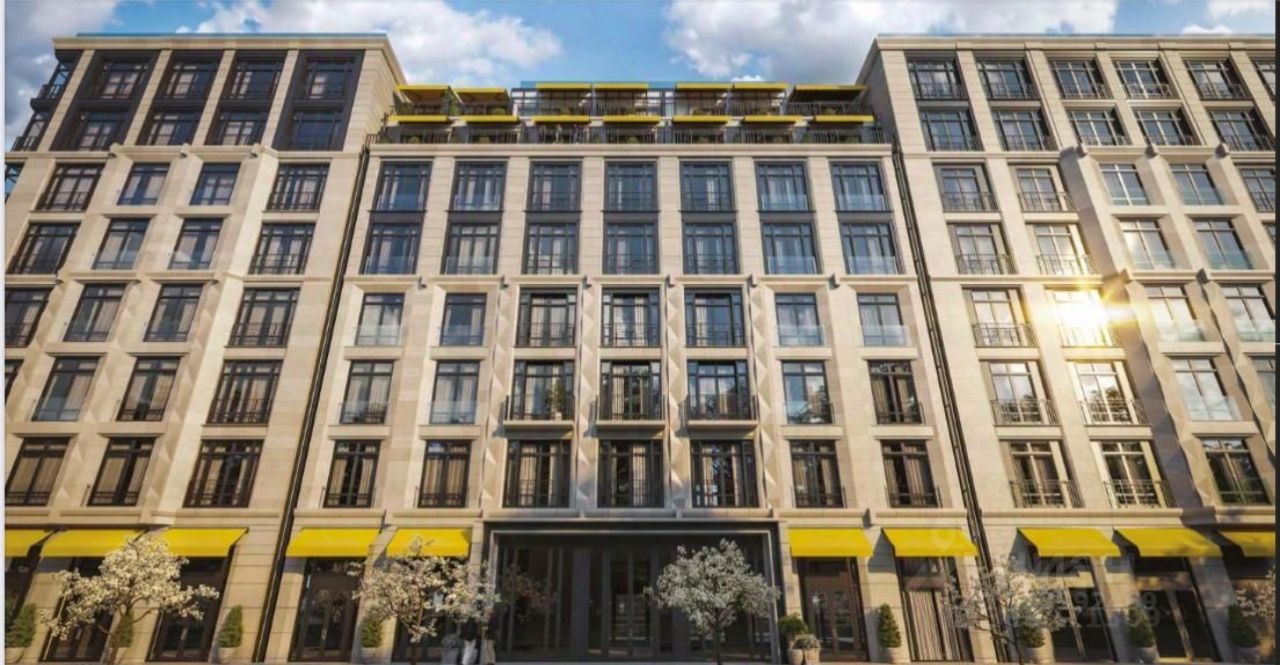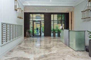 Квартира расположена на 7 этаже/9- этажного дома с фасадами из юрского мрамора, большими панорамными окнами и резными балконными решетками.