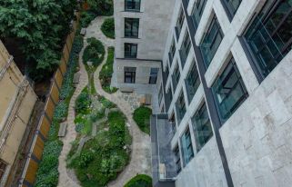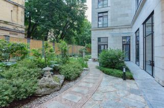 Во дворе находится японский садик, созданный ландшафтным дизайнером Еленой Голосовой - с медитативными зонами, загадочной зоной из камней и посадками сакуры.