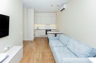 Благодаря панорамному остеклению и высоким потолкам (3 м) пространство квартиры наполнено естественным светом и теплом.