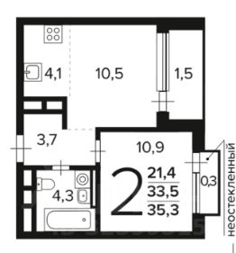 Продается Евродвухкомнатная квартира в ЖК Новые Ватутинки.Квартал у реки. Срок сдачи 4 квартал 2027 года. Отделка ЧИСТОВАЯ. Общая площадь квартиры 35.3 м2. , кухня -гостиная 14 метров и 10.9 изолированная комната ( спальня ).