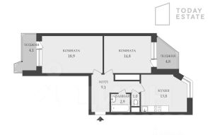Площадь 70.3 кв.метра указана по договору долевого участия, вместе с двумя просторными лоджиями, площадь по ЕГРН 60.7 кв. метра.