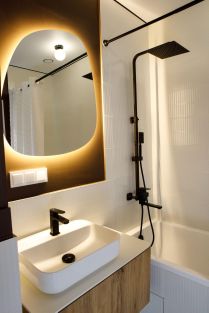 - Продуманная инженерия: система защиты от протечек, Rehau, Far, медный негорючий кабель ВВГ-нг, щиток по ПУЭ, новые автоматы/УЗО, реле защиты от перенапряжения, проходные выключатели + возможность выключать весь свет у выхода и у кровати, слаботочные линии (интернет, ТВ, оптика) выведены в гардеробную, подготовка под измельчитель и проточный водонагреватель.