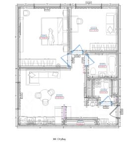 Планировка: кухня-гостиная + изолированная спальня + кабинет/детская + 2 санузла