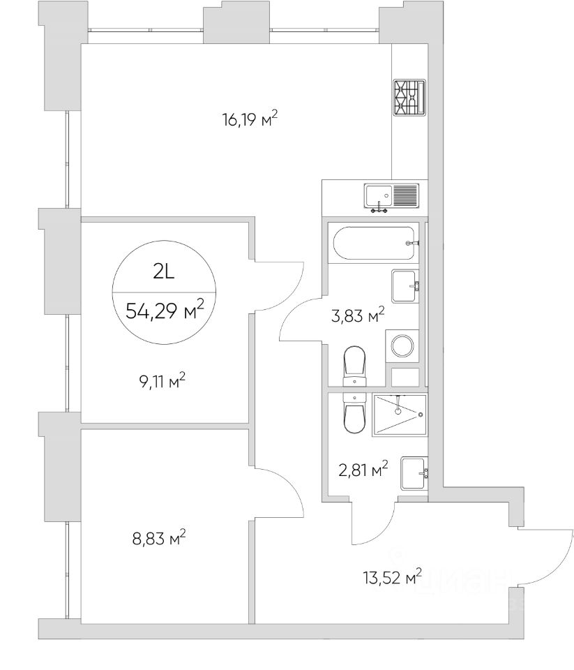 Общая площадь54,29 м²