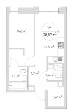Общая площадь38,59 м²