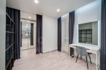 Планировочным решением предусмотрены: гостиная с обеденной зоной, кухня, мастер-спальня с гардеробной комнатой и с/у, гостевая комната (можно переоборудовать в кабинет или детскую), гостевой санузел, много дополнительных встроенных шкафов и мест для хранения. Выполнен ремонт в современном стиле, квартира полностью укомплектована мебелью, предметами декора, бытовой техникой и готова к проживанию, отделка выполнена из премиальных материалов.