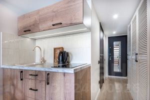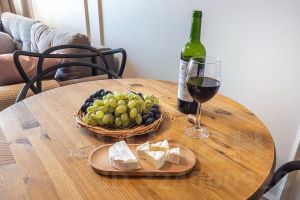 - Кухня со всем оборудованием: варочная панель, холодильник, микроволновая печь, посуда.