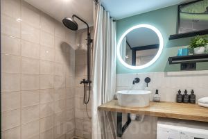 - сан.узел с душем. Установлен проточный нагреватель, стиральная машина.