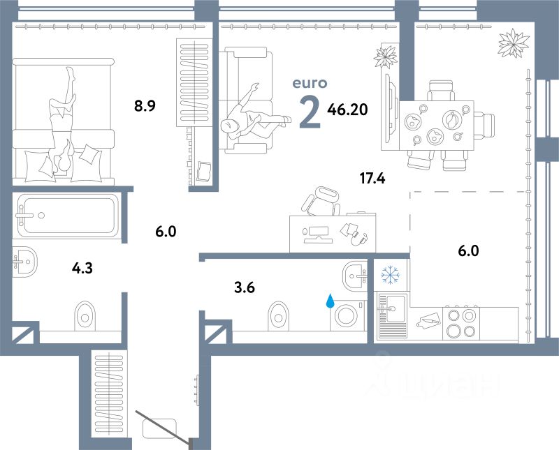 Продаётся 2-комнатная квартира в строящемся доме (Дом 1), срок сдачи: II-кв. 2026, общей площадью 46.2 кв.м., на 9 этаже. Многоэтажные жилые дома с объектами инфраструктуры, расположенные по адресу: г. Москва, внутригородское муниципальное образование Очаково - Матвеевское, ул. Озерная, вл. 42.
