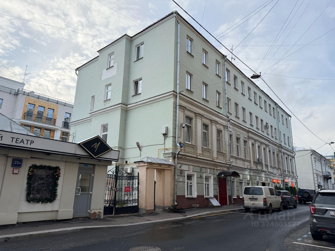Квартира тихая и светлая, общая площадь 36 кв.м., четыре окна на 2 стороны света: на Скатертный переулок и сторону Кремля. Расположена квартира на третьем этаже. Лифта нет! Высота потолков 2.85м.