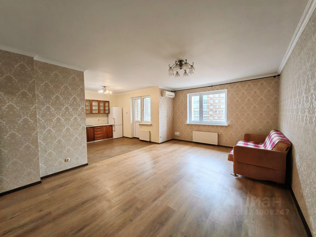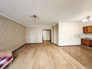 Распашная планировка квартиры с окнами на северо-восток (во двор) и юго-запад (детский садик), включает спальню 17.8 м2, кухню-гостиную 35.5 (10.5 + 25) м2, гардеробную, лоджию с панорамным остеклением 3.1 м2, оборудованный теплым полом совместный санузел 5.0 м2 и просторный коридор 12.5 м2. Общая площадь с учетом лоджии составляет 75.1 м2.В цену входит кухонный гарнитур, холодильник, варочная поверхность, стиральная машина, кондиционер. Квартира в отличном состоянии (см. фото), с качественным ремонтом. Эксплуатировалась в режиме лайт.