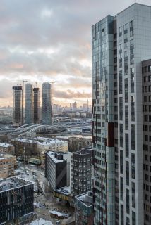 • Вид: 21 этаж. Увеличенные оконные проемы выходят на запад — открывается вид на небоскребы Кутузов River , парк Победы и ежедневные закаты.