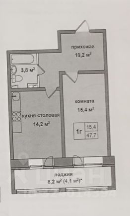 Очень удобная планировка . Общая площадь, 51,8 кв.м, жилая 15,4 кв.м. Комната 15,4, кухня-столовая 14,2 кв.м, совмещённый санузел 3,8 кв.м,