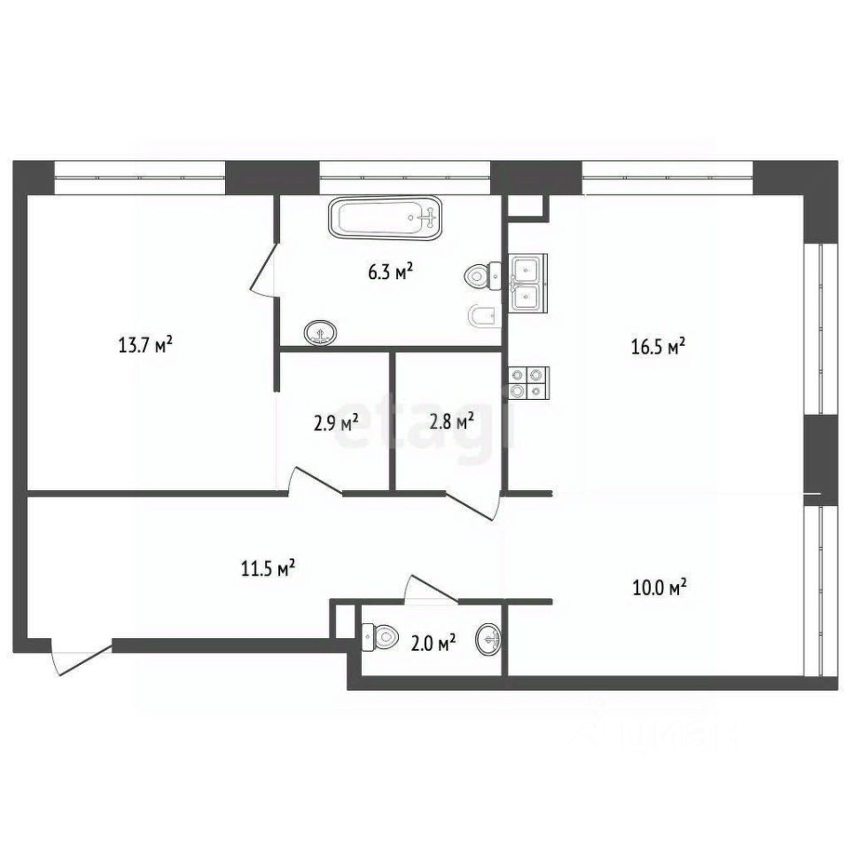 Продаётся квартира общей площадью 68,1 кв.м. на 7-м этаже.