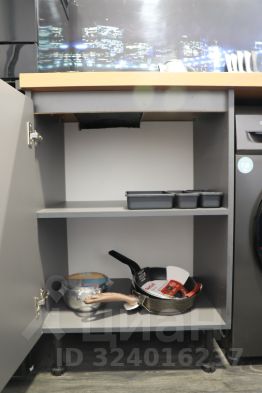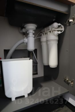 Кухонный гарнитур включает в себя встроенную технику: индукционную варочную панель, посудомоечную машину, стиральную машину, холодильник, фильтр для питьевой воды.