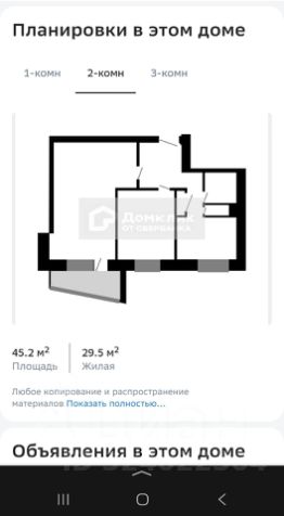 Предлагаем квартиру : Общая площадь 45,1 м² (комнаты 29,5м м², кухня 6.5м²)