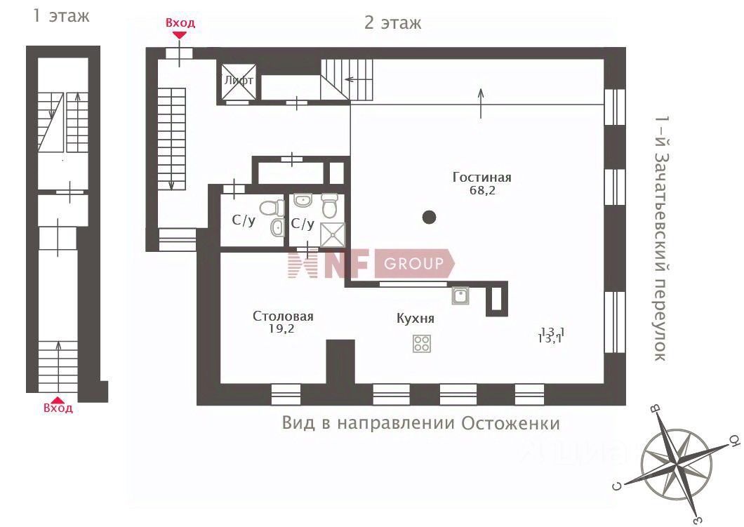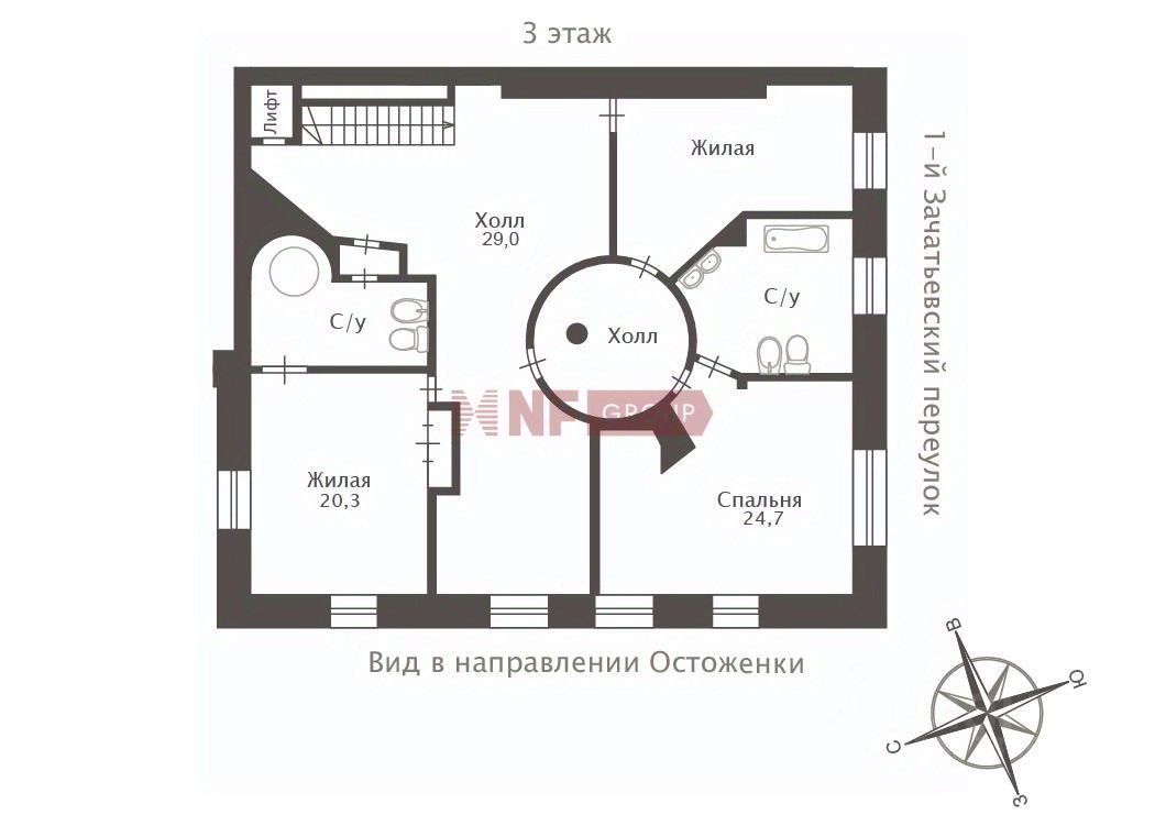 Лот: 99761. Эксклюзив NF GROUP. В продаже двухуровневая квартира в историческом особняке усадьбы Савеловых в Зачатьевском переулке на Остоженке.