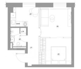 ПРОСТОРНАЯ комната = 22 кв.м. имеет деление на спальню и гостиную (см. фото/план).