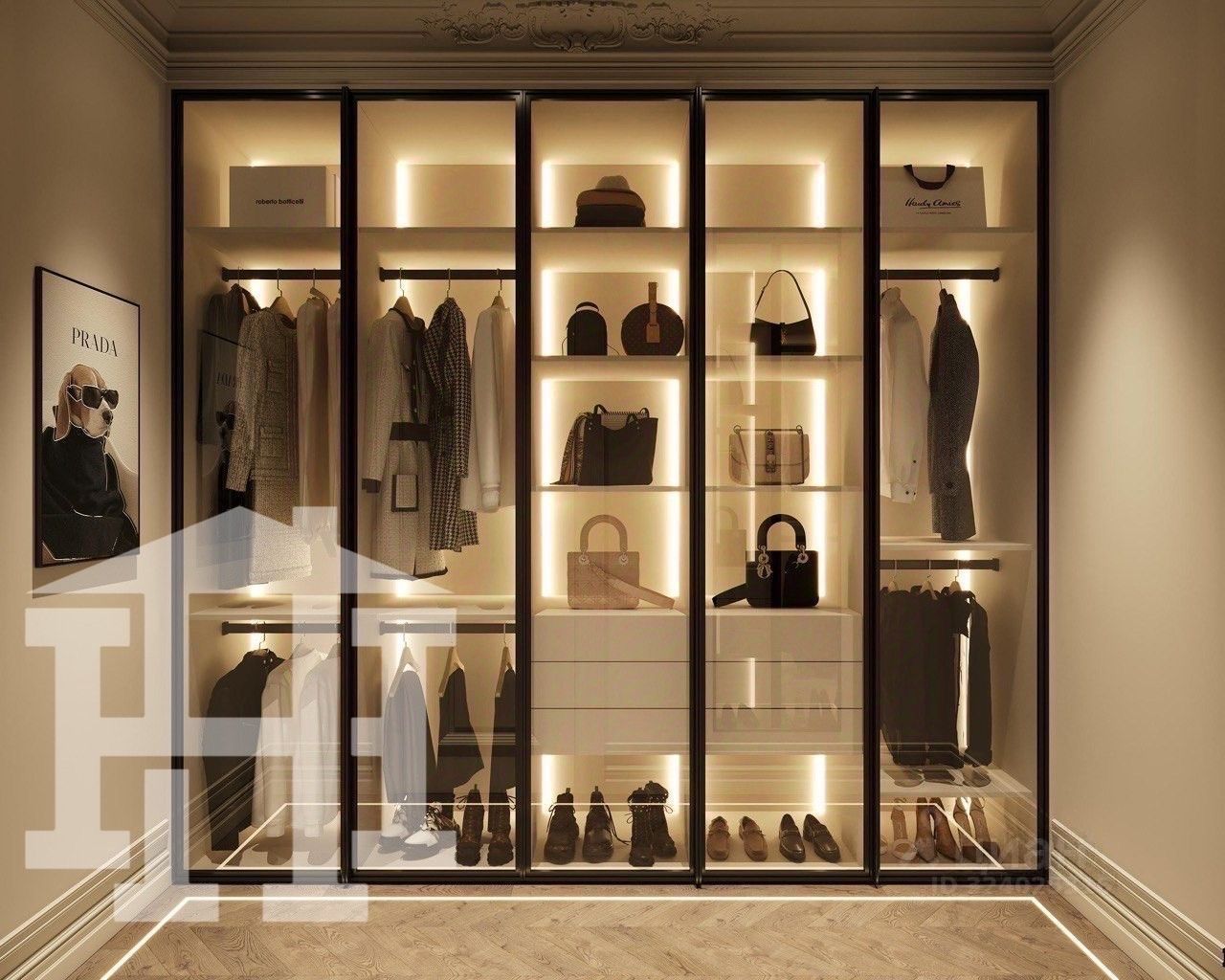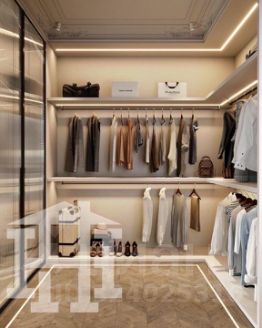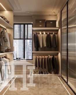• Спальня с просторной гардеробной — тихое и уютное место для отдыха, где можно хранить вещи и наслаждаться приватностью.