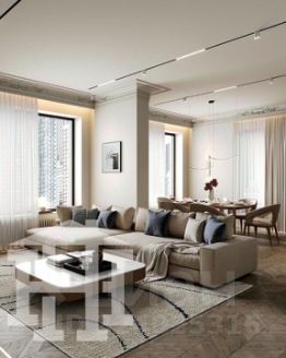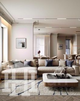 • Просторная гостиная с большими окнами наполняет квартиру естественным светом и создает ощущение уюта. Здесь найдется место для отдыха, работы и приема гостей.