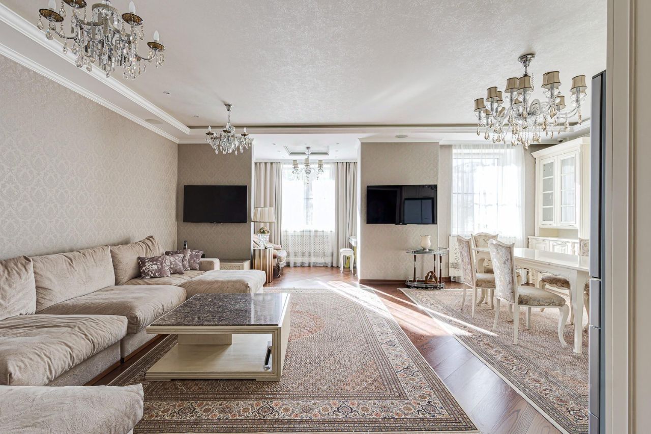 Предлагается к продаже просторная и светлая квартира с премиальным дизайнерским ремонтом, выполненным в элегантной классической стилистике. Интерьер продуман до деталей: гармоничная палитра, качественные натуральные материалы и продуманная система освещения с хрустальными люстрами по периметру создают особую атмосферу в квартире.