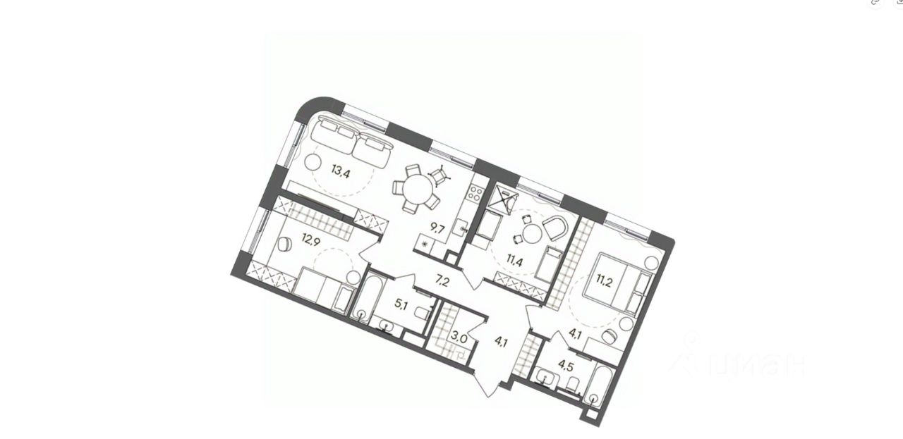 -Кухня-гостиная 23 м² — огромное пространство для создания идеальной зоны для отдыха и общения. Три окна делают эту комнату особенно светлой и уютной.