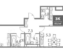 Формат: евро-3 (кухня-гостиная + 2 отдельные комнаты).