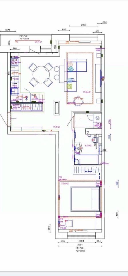 Вторая совмещена с кухней (Кухня-Гостиная)