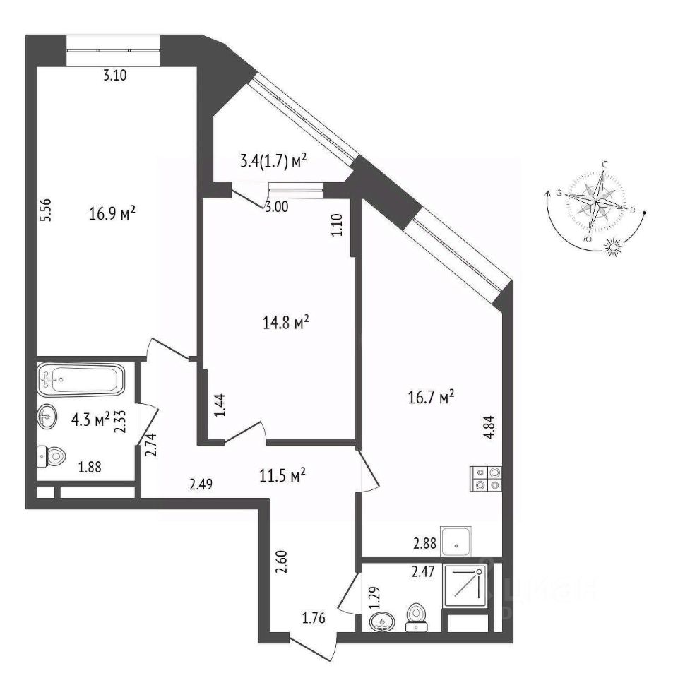 - Современное и удобное планировочное решение;