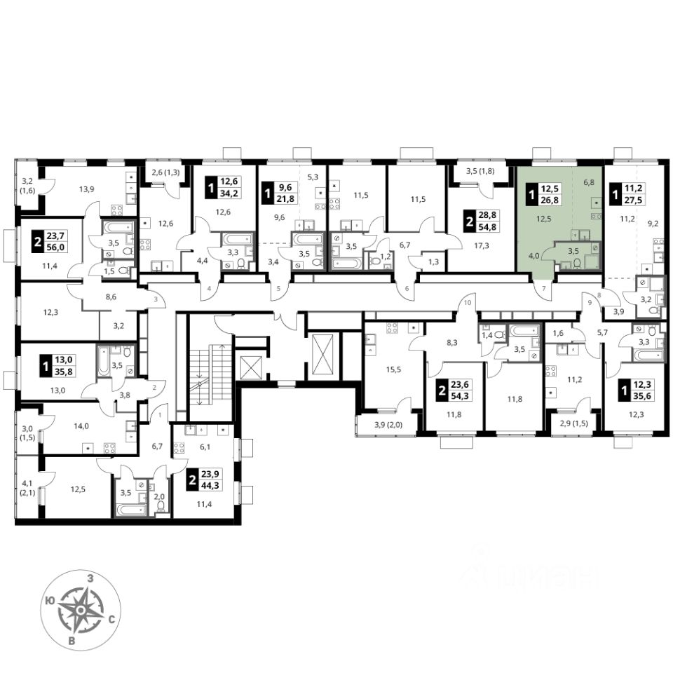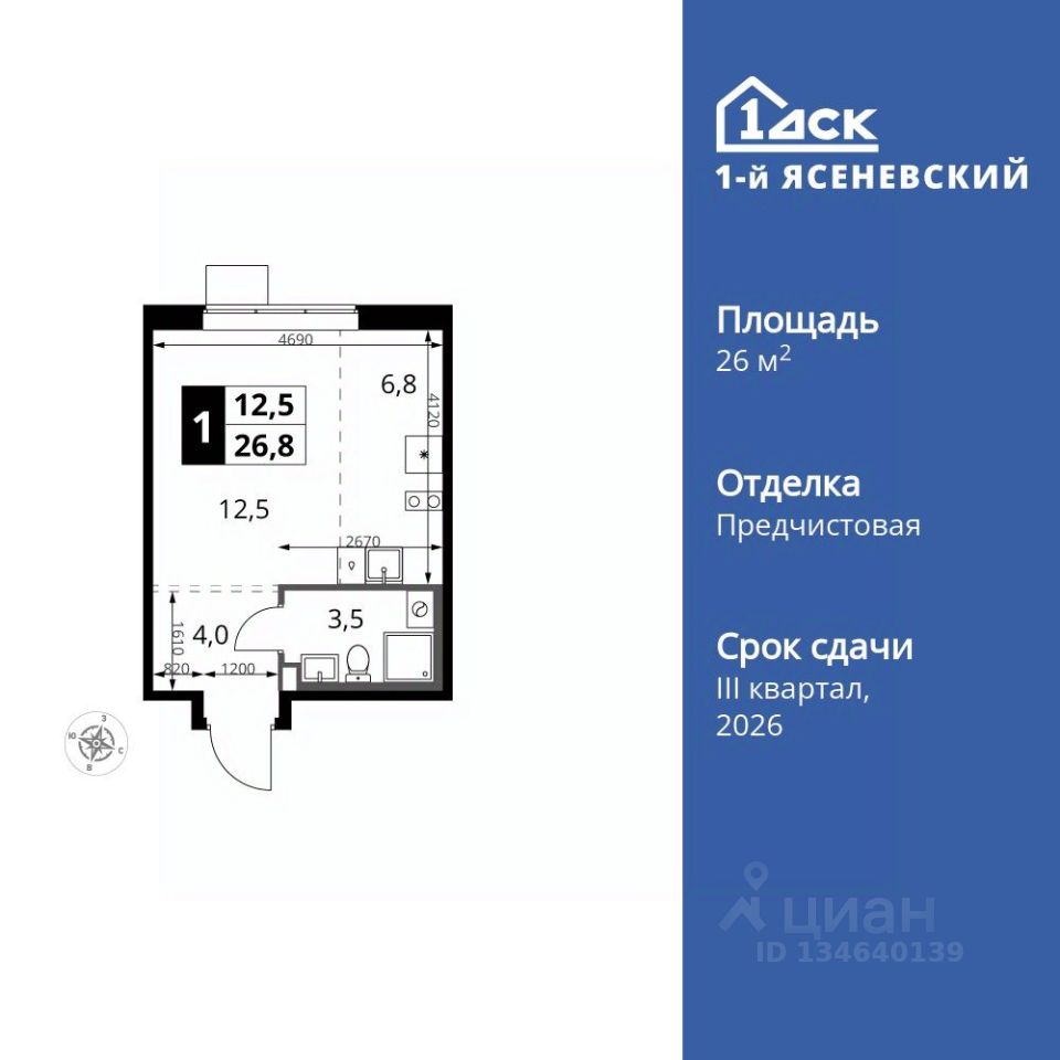 Продаётся квартира-студия номер 147 общей площадью 26.8 кв.м. на 16-м этаже 16 этажного здания. Отделка Whitebox.