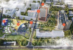 • Сквер-парк площадью 1,5 га с зонами отдыха и детскими/спортивными площадками.