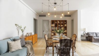 Квартира с 2 спальнями площадью 135 м² в комплексе делюкс-класса "Дом на Смоленской" на 9 этаже. Интерьер оформлен в современном стиле с преобладанием спокойных оттенков, создающих уютную и расслабляющую атмосферу. Комнаты дополнены стильной мебелью и укомплектованы бытовой техникой — здесь легко почувствовать себя как дома с первых минут. Предусмотрено много мест для хранения одежды.