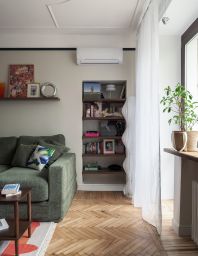 Редкая планировка, много окон и света, комнаты изолированные, гостиная проходная, ванная комната с окном, балкон с отличным видом на зеленый двор и Сити, есть отдельная гардеробная комната/кабинет. Дом кирпичный, чистый подъезд, приятные интеллигентные соседи.