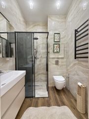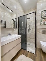 - 2 совмещённых санузла с теплыми полами: 1-ый с душевой и ванной, 2-ой с душевой
