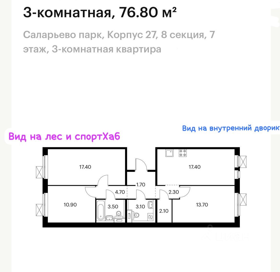 Светлая уютная Квартира от ПИК (полноценная трехкомнатная квартира 76,8 кв.м. или евро четырехкомнатная):