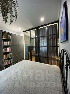 Спальная комната с вместительными встроенными шкафами и кондиционером.
