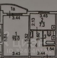 Общая площадь - 40, без балкона - 37,6, кухня - 7,3, прихожая - 7,4.
