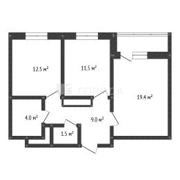- просторная жилая зона в 31,9 кв. м, две изолированные комнаты предоставляют достаточно места для комфортного проживания: 19,4 кв.м (5.1х3.8м) и 12,5 кв.м (3,3х3,8м)