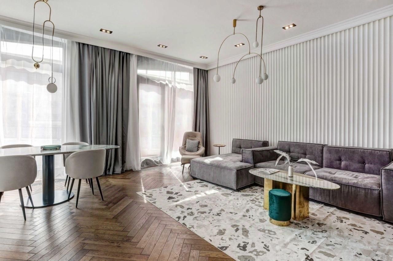 В Золотой миле на острове Балчуг предлагается к продаже 3 комнатный апартамент с 2 спальнями с качественным дизайнерским ремонтом в современном стиле с использованием натуральных материалов, мрамор, дуб. Вся техника Asco, мебель выполнена на заказ у лучших европейских производителей.