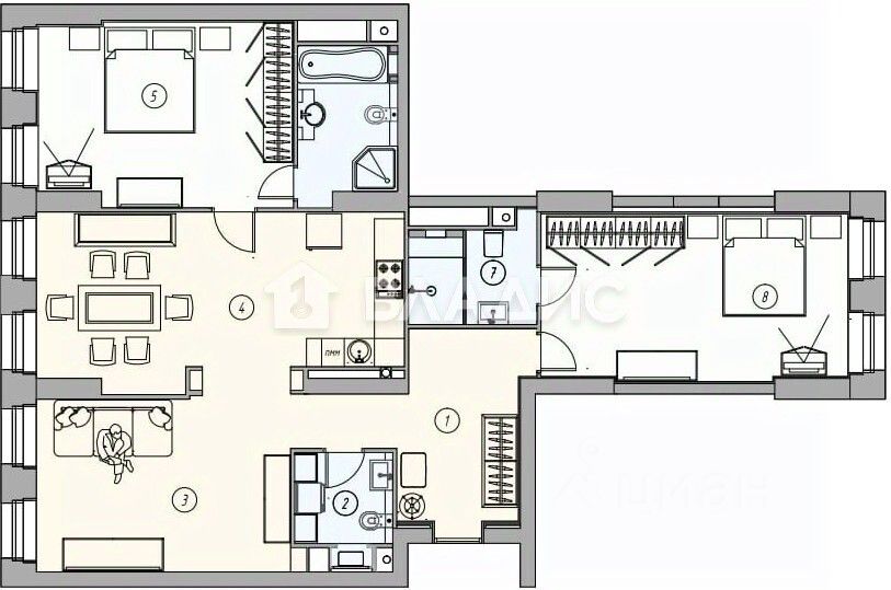 Код объекта: 1924666. Квартира по улице Шмитовский проезд, рядом с метро Шелепиха- 3 минуты пешком. Уникальное предложение в самом сердце Москвы! Великолепная квартира в престижном ЖК Headliner по адресу Шмитовский проезд, 39к1. Просторные комнаты, продуманная планировка и современный ремонт — всё, что нужно для комфортной жизни. Квартира расположена на 12 этаже монолитного дома, построенного в 2019 году. Высокие потолки (3,05 м) создают ощущение простора и свободы. Три санузла обеспечивают удобство для всех членов семьи. Дизайнерский ремонт позволит вам сразу заселиться и наслаждаться комфортом. Общая площадь квартиры — 108 кв. м, из которых 57,21 кв. м приходится на жилую площадь. Просторная кухня площадью 28,4 кв. м станет местом для семейных ужинов и дружеских посиделок. По квартире с новым ремонтом в Headliner - Потолки в чистоте 3,05 - Шумоизоляция пола, потолка, стен к прилегающим квартирам - Отделочные материалы европейского качества - Подготовлены выводы под сплит-систему кондиционирования воздуха - Монтаж электрической проводки выполнен от силового щита ГОСТовским кабелем, установлены механизмы немецкого производства (розетки и выключатели), установлена мастер-кнопка, выключающая полностью свет в квартире - IP-домофония - Коллекторная система подачи холодной и горячей воды трубами REHAU - Установлен "Аквастоп" от протечек во всех мокрых зонах - Установлен бойлер объёмом 80 л. на все точки водоразбора - Коллекторная система отопления трубами REHAU с терморегуляторами на радиаторах Используемые отделочные материалы: - Подоконники из мрамора Emperador Dark - Напольное покрытие входной зоны, гостиной и кухни из керамогранита производства Индии из двух коллекций: Emperador Dark и Emperador White - Напольное покрытие жилых комнат из ламината 33 класса производство Бельгия - В санузлах пол и стены из керамогранита производство Kerama Marazzi - Стены подготовлены под финишную чистовую отделку: обои/краска Основная мебель: - Кухня производство Италия из МДФ, покрытие эмаль - Столешница гранит Baltic Brown - Мебель в комнатах и люстры европейского производства (Италия, Испания) Отличное расположение квартиры обеспечит лёгкий доступ ко всем важным точкам города. Подземная парковка гарантирует безопасность вашего автомобиля. Не упустите свой шанс на приобретение идеальной квартиры в одном из самых престижных районов Москвы! Мы гарантируем безопасную сделку и юридическую поддержку нашим Клиентам. Поможем одобрить ипотеку с сниженной ставкой. Мы предложим Покупателю приятный бонус! Позвоните нам прямо сейчас, чтобы узнать больше и записаться на просмотр.