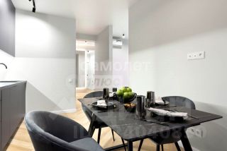 Квартира выполнена в современном стиле с использованием высококачественных материалов. В отделке применены нейтральные тона с акцентными элементами, создающими уютную и гармоничную атмосферу. Использованы экологичные материалы, обеспечивающие безопасность и долговечность.