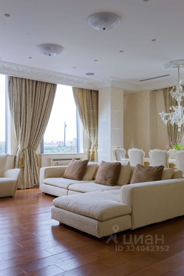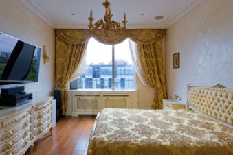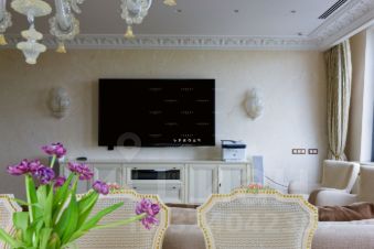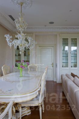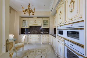 Светлая квартира, классический стиль, в отделке использовались только качественные, натуральные и дорогие материалы: венецианская штукатурка, лепнина, мрамор, вся мебель из Италии. Бытовая техника Kuppersbusch, встроенная в кухонный гарнитур.