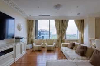 Фактически 2 спальни, но возможно сделать третью спальню вместо гардеробной. Планировка: кухня 15 кв.м. , гостиная 48 кв.м., мастер спальня 24 кв.м. с санузлом (душ и ванна) 11 кв.м. и гардеробной комнатой (с окном) 17 кв.м., детская спальня 20 кв.м., санузел (душ) 8 кв.м. постирочная, прихожая 16 кв.м. Из панорамных окон виды в сторону Парка Победы. Разумный торг уместен после просмотра и при определении всех условий сделки.