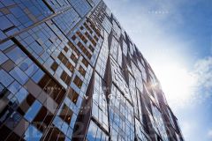 Железобетонный каркас дома одет в фасадный профиль Hueck/Hartmann (Германия) и украшен натуральным каменем каррарский мрамор светлого тона. В жилую часть комплекса ведет просторная галерея высотой более 8 метров, отделанная угольно черным и молочно белым мрамором, травертином и стеклянными панелями. Оснастка скоростным лифтовым оборудованием SIGMA (LG Elevators) (4 м/с): 15 лифтов в жилой части, 6 - в офисной, 5 лифтов в торговом центре, позволит жителям с комфортом добираться даже на самые заоблачные высоты "Дома на Мосфильмовской". Высокие потолки квартир (3,3 м.), пентхаусов (3,9-4,8 м.) и увеличенные окна Hueck делают помещения светлыми и просторными. Также сис